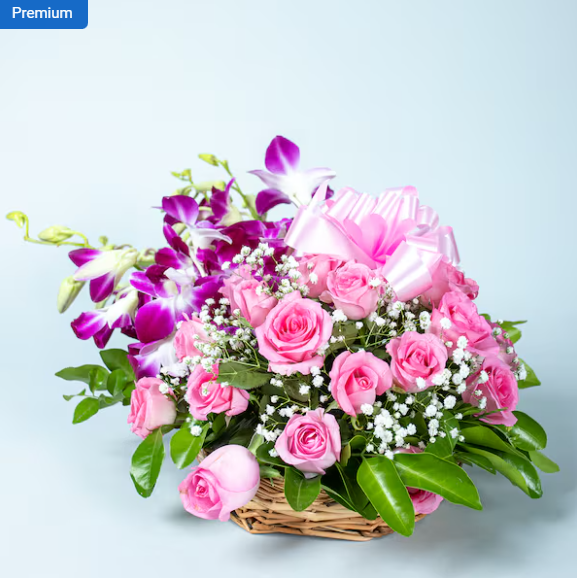 - Flowers Contains: 15 Pink Roses And 5 Orchids