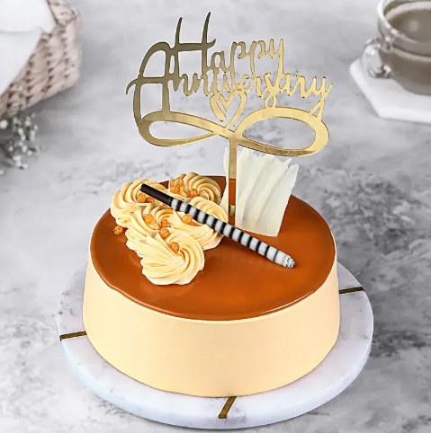 Golden Love Eggless Butterscotch Anniversary Cake