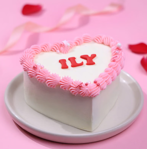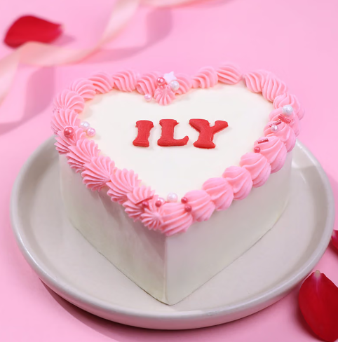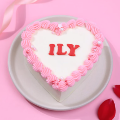 This heart-shaped chocolate bento cake features rich chocolate sponge layered with smooth cream and a playful ILY message at the centre. Finished with soft pink borders and pearl details, it’s a perfect mini cake for romantic surprises, anniversaries, and sweet love-filled moments.