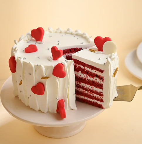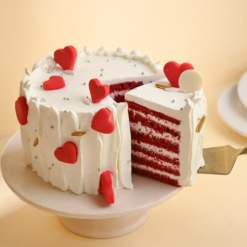 Little Heart Red Velvet Cake is an elegant and indulgent dessert, beautifully frosted and finished with fondant hearts and silver edible beads. Soft, moist red velvet layers paired with creamy frosting create a rich and delightful taste. Perfect for romantic occasions or special celebrations, this cake adds sweetness and charm to every memorable moment.