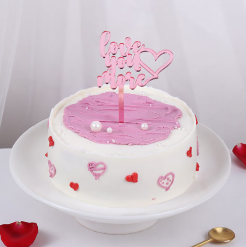 This chocolate cream cake blends soft sponge layers with smooth, silky cream and a charming “Love You More” topper. Finished with delicate heart accents and a blush centre, it’s a perfect pick for romantic surprises, anniversaries, and moments meant to feel extra special.