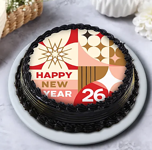 New Year 2026 Personalized Truffle Photo Cake