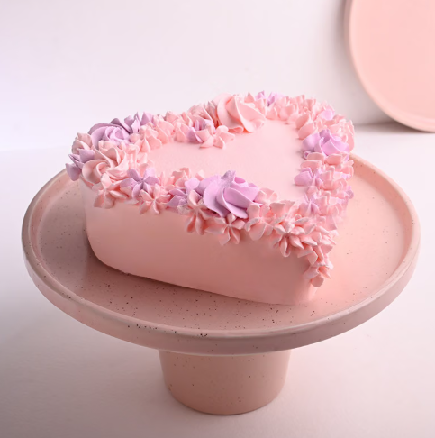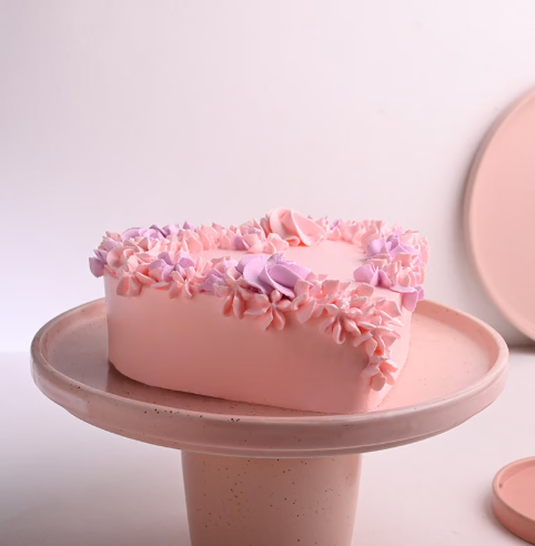 This heart-shaped chocolate cream cake is finished with smooth pink frosting and delicate floral designs. Rich chocolate flavour in every bite makes it perfect for romantic occasions and sweet surprises.