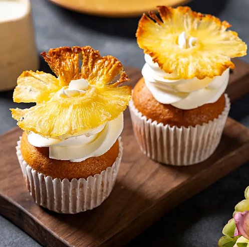 Delight in the tropical goodness of our Pineapple Cup Cake This soft moist cupcake is infused with sweet pineapple flavor and topped with a creamy smooth frosting. With a hint of fruity sweetness in every bite its the perfect balance of light cake and refreshing pineapple goodness. Ideal for any occasion this cupcake offers a refreshing and delicious treat thats sure to brighten your day