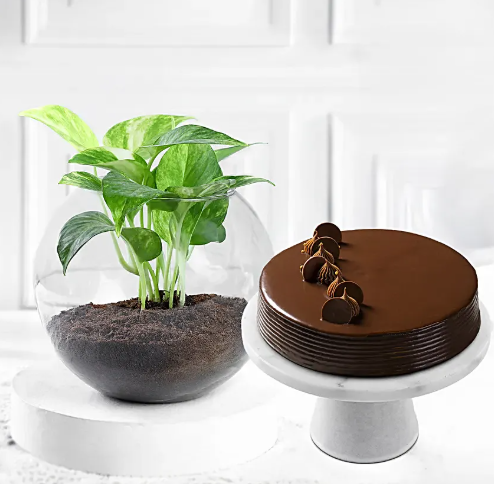 Prosperity Treat Choco Truffle Cake & Money Plant